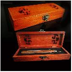 Břitva je uložena v elegantní dřevěné dárkové krabičce.