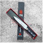 Překrásný víceúčeolvý nůž Petty ze série Kanetsune AUS 10 PRO series. Nůž Petty je užitečnou alternativou velkého šéfkuchařského nože v okamžiku kdy potřebujete přesné řezy, nebo například krájení zelených fazolí nebo jiné menší zeleniny a ovoce. Jsou vhodné též pro špikování a krájení masa. Zaoblené ostří umožňuje mírné kývání při řezu. Jeho ostrost je ideální pro přípravu sendvičů všeho druhu. Čepel je vyrobena z kvalitní japonské nerezové oceli AUS-10, která obsahuje 0,95 - 1,10% uhlíku a dobře vyvážené složení molybudenu, vanadu a dalších legur. Tato nerezová ocel má vynikající odolnost proti korozi a houževnatost, tvrdost je HRC 59-60. Základní a jednoduchá rukojeť z materiálu Plywood má vynikající přilnavost a vysokou odolnost proti opotřebení. Fulltangová konstrukce (čepel nože prochází celým nožem a rukojeť je pronýtována 3 nýty) zaručuje celkovou konstrukční pevnost.