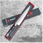 Překrásný a všeobecně použitelný nůž Petty ze série Kanetsune Hon-Warikomi YS-900 series s jádrem z mimořádně tvrdé švédské oceli Sandvik 19C27, které je vložené mezi 2 vrstvy nerezové oceli SUS 410. Nůž Petty je užitečnou alternativou velkého šéfkuchařského nože v okamžiku kdy potřebujete přesné řezy, nebo například krájení zelených fazolí nebo jiné menší zeleniny a ovoce. Jsou vhodné též pro špikování a krájení masa. Zaoblené ostří umožňuje mírné kývání při řezu. Jeho ostrost je ideální pro přípravu sendvičů všeho druhu. Úzká čepel a rukojeť z Plywood s trojím nýtováním vám poskytne tu nejlepší kontrolu při řezání a krájení. Japonské umění, preciznost a nové technologie činí tento nůž jedinečným a nenapodobitelným.