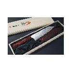 Velmi ostrý japonský nůž Santoku ze série Kanetsune Damascus Minamo-Kaze series z japonské damaškové oceli. Nůž Santoku je bezohledný kuchyňský válečník, který je připraven na všechna vaše přání. Japonské slovo "Santoku" se zhruba označuje jako "tři ctnosti", což svědčí o všestrannosti tohoto nožového stylu a druhu řezů, kterým vyniká (řezání, rozkrájení a mletí). Čepel je obvykle kratší než kuchařský nůž s výrazně odlišnou geometrií. Nůž Santoku je často prohlašován za fúzi mezi šéfkuchařským nožem a Nakiri, což vám přináší výhody obou zmíněných. Vyšší faseta snižuje tření, krájení je tak přesnější. Santoku je dokonalým společníkem při práci s masem, rybami, zeleninou a ovocem. Nepřekonatelné vlastnosti nože oceníte například při krájení cibule. Ostrost čepele zajistí minimální únik tekutiny a vaše pokrmy budou plné šťávy a vitamínů.