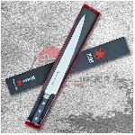 Plátkovací nůž Sujihiki (Slicer) ze série Kanetsune AUS 10 PRO series. Zajistěte, aby každá krůta, každá pečeně a každá šunka byla dokonale krájená, s bezproblémovým pohybem a bezproblémovou manévrovatelností. Pokud patříte k milovníkům hovězího carpaccia, měl by se tento nůž stát povinnou výbavou vaší kuchyně. Japonské umění a nové technologie činí tento nůž jedinečným a nenapodobitelným. Čepel je vyrobena z kvalitní japonské nerezové oceli AUS-10, která obsahuje 0,95 - 1,10% uhlíku a dobře vyvážené složení molybdenu, vanadu a dalších legur. Tato nerezová ocel má vynikající odolnost proti korozi a houževnatost, tvrdost je HRC 59-60. Základní a jednoduchá rukojeť z materiálu Plywood má vynikající přilnavost a vysokou odolnost proti opotřebení. Fulltangová konstrukce (čepel nože prochází celým nožem a rukojeť je pronýtována 3 nýty) zaručuje celkovou konstrukční pevnost.