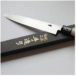 Velmi ostrý japonský nůž Yanagiba/Sashimi ze série Kanetsune Honsho Kanemasa G-Series. Dlouhý nůž broušený jen z jedné strany, určený k řezání tenkých plátků ryb pro sushi a sashimi. S tímto nožem snadno nakrájíte velké kusy masa (pečeně) i tenké plátky zeleniny. Jeho překrásná elegantní tenká čepel je schopna řezat přísady v dlouhých nepřerušovaných řezech a tím zachovat jejich celistvost a svěžest. Yanagiba je jedním z nejdůležitějších tradičních japonských nožů a je součástí repertoáru mnoha kuchařů.