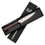 Rukojeť je vyrobena z wengé dřeva, známého svou vysokou tvrdostí, odolností a přirozenou patinou. Díky osmihrannému tvaru skvěle padne do ruky a poskytuje pevný, pohodlný úchop pro maximální kontrolu při krájení. Je symetricky tvarovaná, což znamená, že nůž je vhodný jak pro praváky, tak i pro leváky.