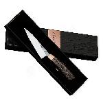 Menší univerzální čepel s ostrou špičkou, která je typická pro přesné a jemné řezy. Tento design se hodí pro různé detailní práce – od řezání drobných surovin, jako jsou bylinky nebo ovoce, až po přesné úpravy při porcování masa. Ostrá špička umožňuje přesné vedení řezu a kontrolu při práci. Takový tvar je oblíbený také pro různé řemeslné nebo outdoorové činnosti, kde je potřeba kombinovat pevnost a přesnost. Navíc díky rakouské oceli Böhler N690 a celkovému tvaru působí nejen funkčně, ale i esteticky. Je to perfektní volba pro ty, kteří si cení detailu a preciznosti. Tento nůž je jednoznačně exkluzivní a sběratelský kousek, který nejen skvěle slouží, ale také vypadá jako umělecké dílo. Skvělá volba pro milovníky ručně vyráběných nožů!