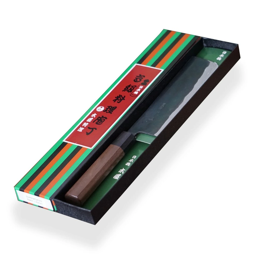 Japonská uhlíková ocel Takefu V special grade 2 není zcela nerezová a proto vyžaduje nadstandardní péči. Nůž je nutné po každém krájení očistit, osušit a potřít olejem. Skvrny a patina na povrchu ostří jsou zcela běžnou součástí těchto velmi ostrých nožů.