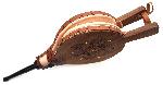 funkční krbové dmychadlo ze dřeva zdobeného vypalováním a kovovými cvočky a z pravé kůže, vhodné pro krby a domácí i venkovní grily