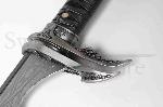 The latest in the Swords of the Ancients(tm) collection! Vorenthul is one of the three swords of Avonthia. The Avonthians were three brothers, sons of a king in ancient times, who were charged with imprisoning the deathless spirit of the Dark One in the depths of the earth (from the Swords of the Ancients mythology). The Samurai style hilt is fitted with a double guard, a tightly wrapped genuine leather grip, and a hooked and pointed pommel spike. The Elven style stainless steel blade is adorned with a deep etched flame design and a laser engraved Kit Rae emblem.