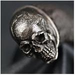 Pravým klenotem je rukojeť vyrobená z exotického dřeva Desert Iron-wood (pouštní železné dřevo), které je známé svou extrémní hustotou a krásnou medově oranžovou kresbou. Dominantním prvkem je detailně zpracovaná lebka na konci rukojeti, která slouží jako stylová hlavice. K noži náleží masivní kožené pouzdro s vyraženým symbolem lebky, které zajistí bezpečné nošení v revíru i na výstavě.