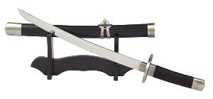 This small samurai sword is for decorative use only and has a blade made of stainless steel.
