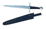 nefunkční replika historické dýky s koženou rukojetí a černou koženou pochvou, v provedení starožitná patina;